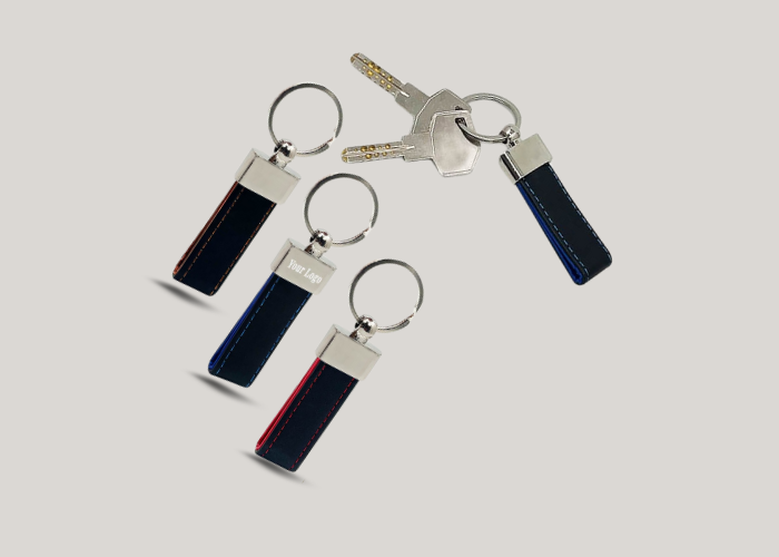 Customized Black and Gray Leather Keychain with Logo